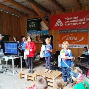 V cíli nechyběly úsměvy a radost z toho, že to všichni zvládli. A aby nikdo neodešel s prázdnou, každý si odnesl láhev na pití s logem našeho oddílu. Pitný režim je důležitý nejen při závodech, ale i ve škole nebo na výletě.“